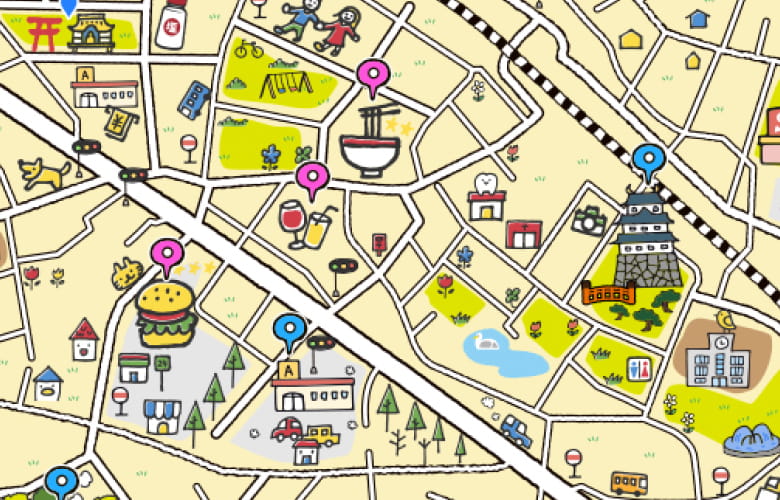 ※実際のご利用時はGPS連動で自身の位置がマップ上に表示されます。