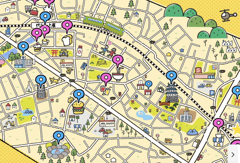 ※実際のご利用時はGPS連動で自身の位置がマップ上に表示されます。